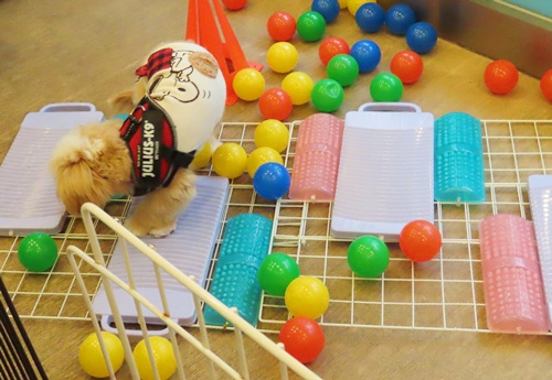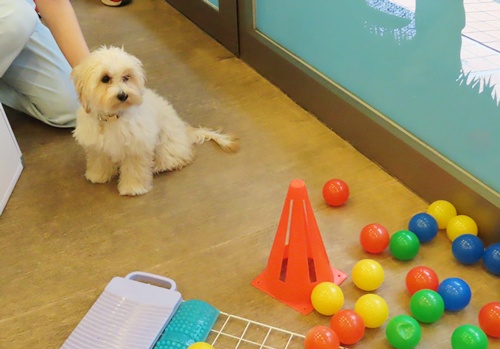 それらをわんちゃんが自分で障害物を乗り越えて怖くないもの、乗り越えられるものなど