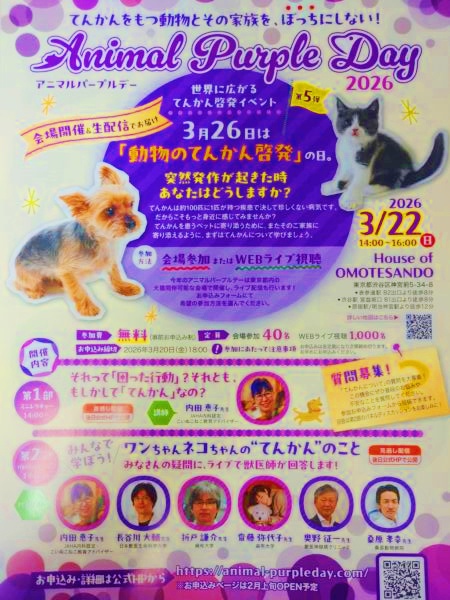 この活動にちなんで、わんちゃんねこちゃんのてんかんについても考える活動が盛んになり、今年はセミナーなども開催されます!
