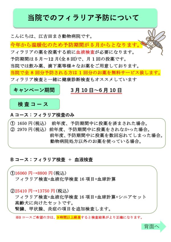 そろそろフィラリアやノミ・ダニの予防の季節が始まります![]()